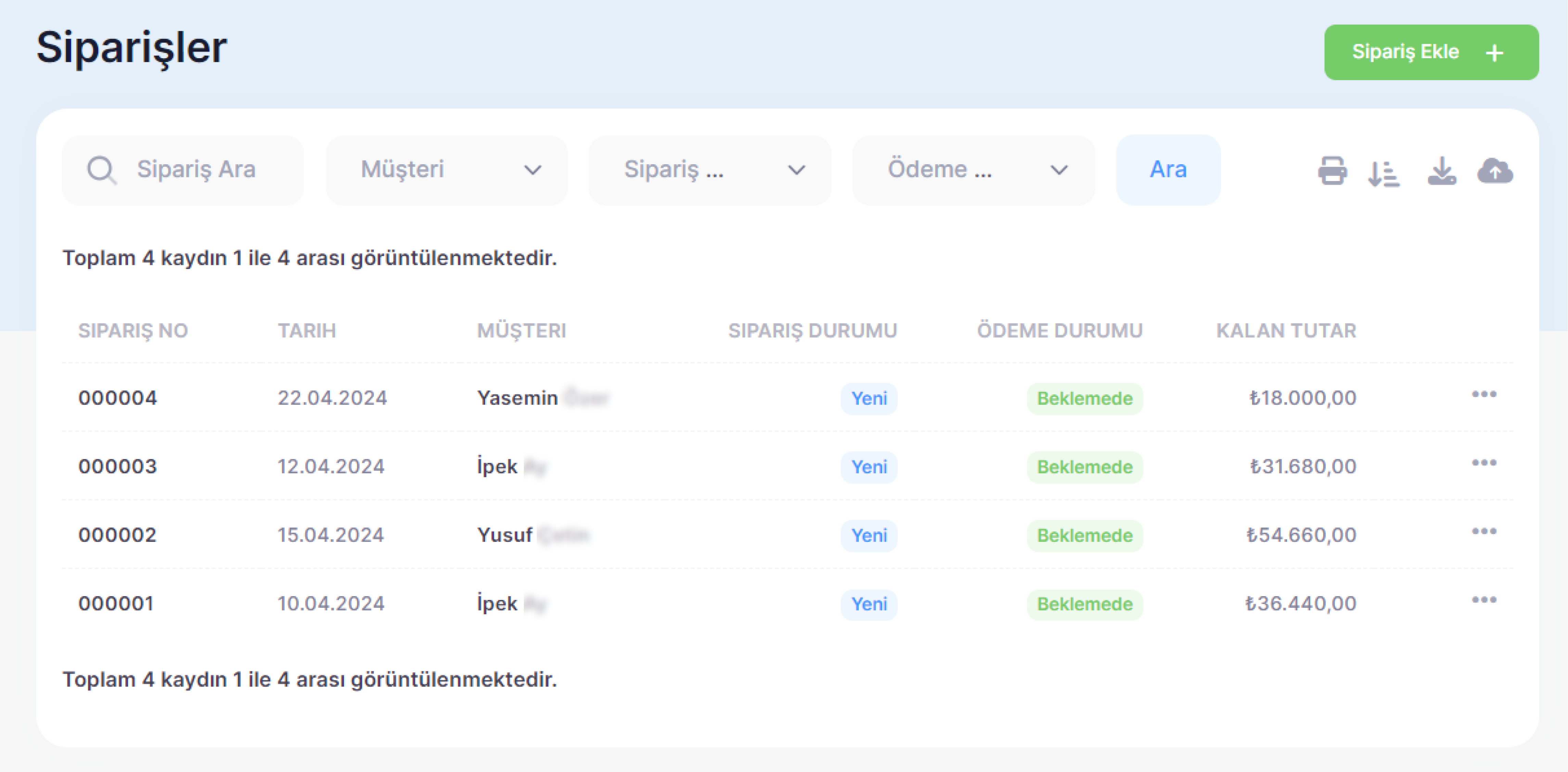 Müşteri siparişlerinin her adımını kontrol edin. Ödeme durumları, sipariş durumu, siparişe ait faturaların kontrolü ve değişiklikleri kolayca yapılabilir.